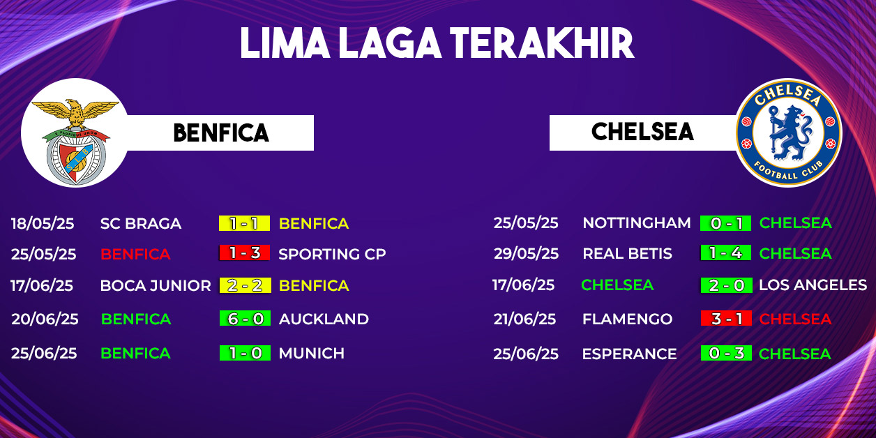 Apapun hasilnya, laga Benfica vs Chelsea di Piala Dunia Antarklub 2025 dipastikan menyajikan tontonan menarik bagi para penggemar sepak bola di seluruh dunia.