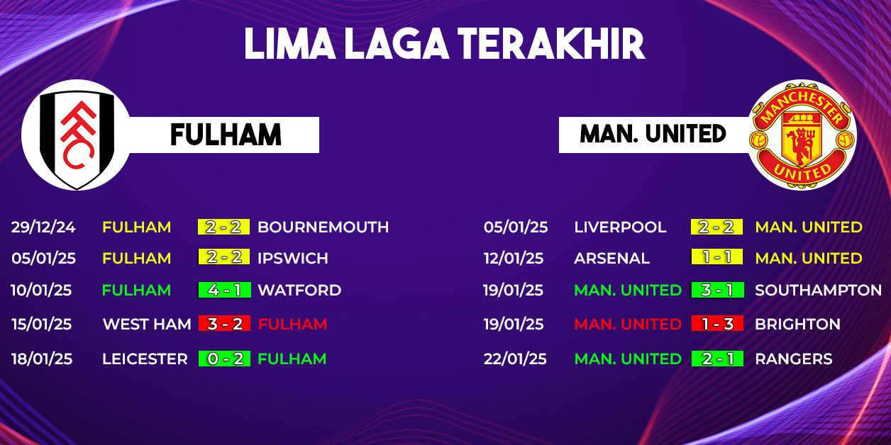 Pada pertandingan sebelumnya, Fulham dan Manchester United mencatat hasil yang berlawanan. Fulham sukses meraih kemenangan 2-0 atas Leicester City di laga tandang. Sebaliknya, Manchester United harus menelan kekalahan pahit di Old Trafford setelah dipermalukan Brighton dengan skor 1-3. Kekalahan ini juga diwarnai performa kurang memuaskan dari kiper mereka, Andre Onana.