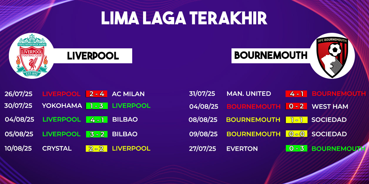 Liverpool akan memulai perjalanan mereka di Premier League musim 2025/2026 dengan menjamu Bournemouth di Anfield pada Sabtu, 16 Agustus 2025 pukul 02.00 WIB. Pertandingan Liverpool vs Bournemouth akan disiarkan secara live streaming di Vidio dan menjadi sorotan utama para penggemar sepak bola Inggris.