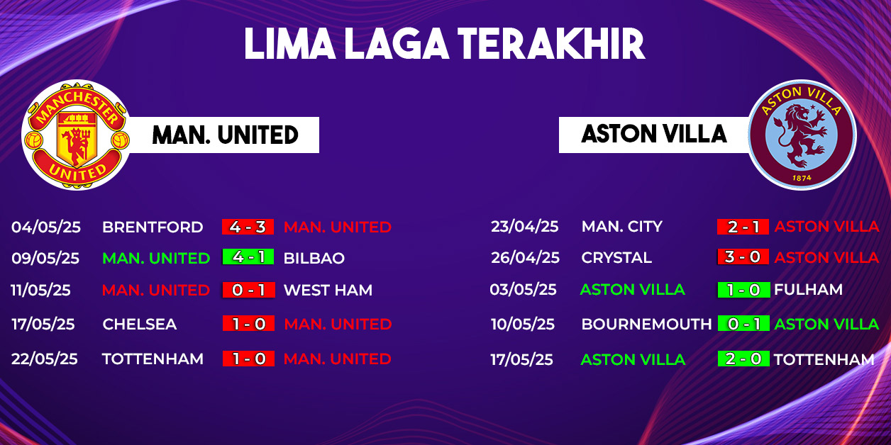 Berbanding terbalik dengan Manchester United, Aston Villa datang ke laga ini dengan semangat tinggi dan peluang nyata untuk lolos ke Liga Champions musim depan. Tim asuhan Unai Emery saat ini memiliki jumlah poin yang sama dengan Chelsea, dan kemenangan di Old Trafford bisa menjadi tiket emas—tergantung pada hasil pertandingan Chelsea.