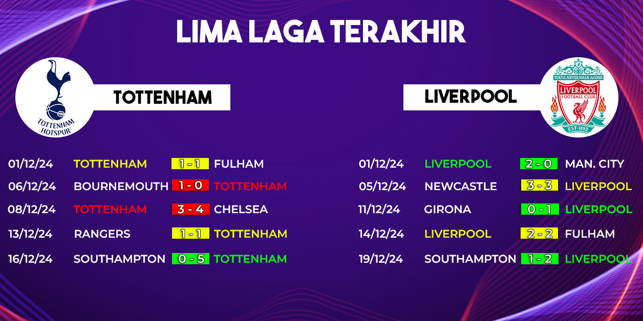 Rekor pertemuan kedua tim menunjukkan keunggulan Liverpool. Dalam beberapa musim terakhir, The Reds berhasil mendominasi Tottenham, baik di kandang maupun tandang. Namun, dengan performa Tottenham yang mulai membaik, laga ini diprediksi akan berjalan lebih seimbang dibandingkan pertemuan sebelumnya.