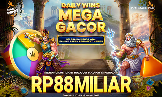 Daily Wins Mega Gacor akan berlangsung mulai 30 Maret 2026 hingga 28 Maret 2027 dengan Total Hadiah sebesar Rp 88,000,000,000 dalam 12 Level.